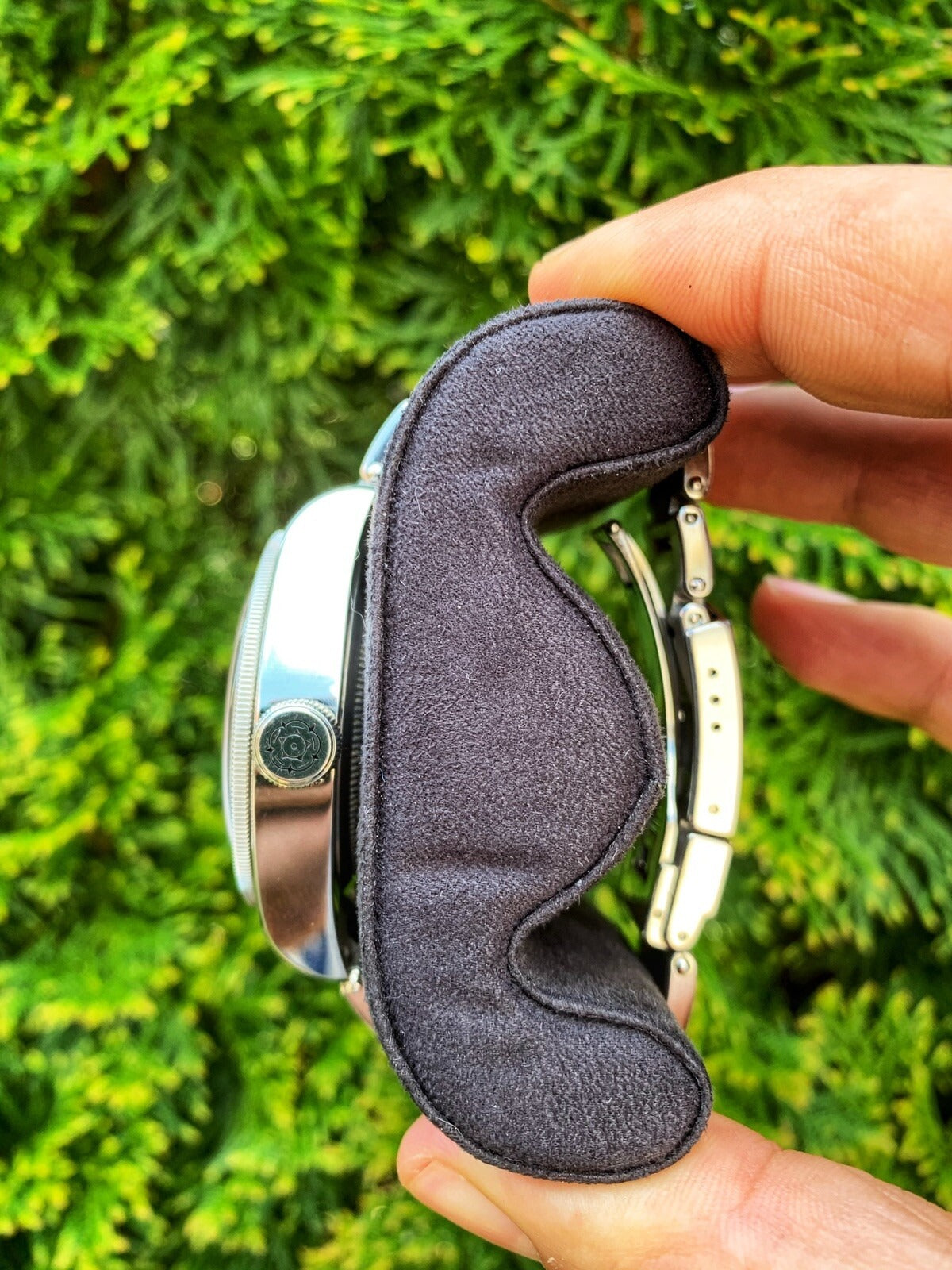 Crystal and bezel are clean. Light swirl marks from normal wear, no strap change marks on lugs.